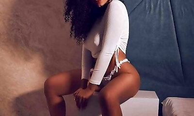 chica/chica con curvas con culo súper caliente recibiendo su coño afeitado pulverizado usando un juguete