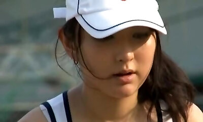 chica asiática con grandes tetas finalmente llega a jugar al golf desnuda