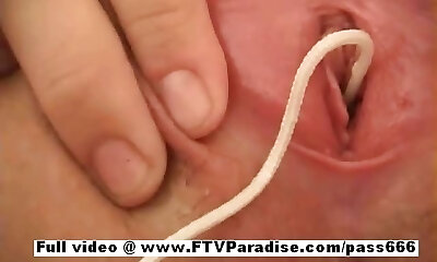 pee hole fucking with toothbrush and insertion of long metal chain into her bladder