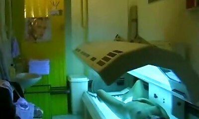 Teen girl fingers pussy during tanning