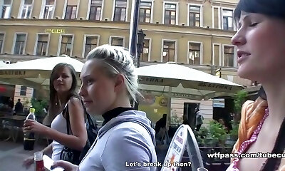 Cute blonde and pretty brunette get hotly smashed in public