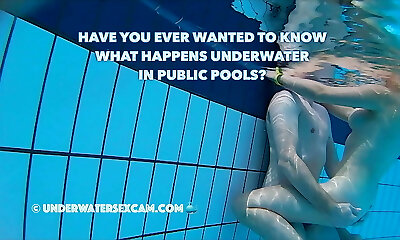 Real couples have real underwater orgy in public pools filmed with a underwater camera