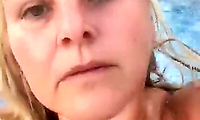Kitty Queen - Just Nude Swimming - Blonde BBW Cougar swimming in the pool