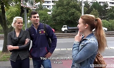 Two Young Wives and Male Homies Go to Hotel for Hookup Tour