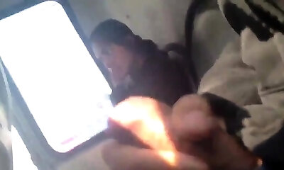 voyeur verführt milf, seinen schwanz im bus zu lutschen und zu wichsen