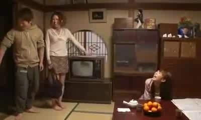 figlio scopa mamma e ragazza allo stesso tempo