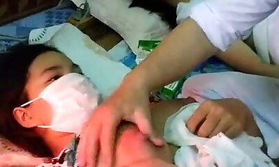 buxomy ragazza asiatica che ottiene un downblouse durante la pulizia