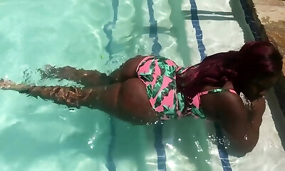 Salacious pornstar caught on cameras at a pool of water preparing for action