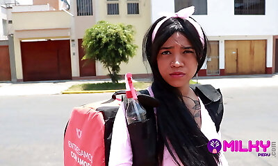 Delivery girl asks me for a job in swap for fuckfest